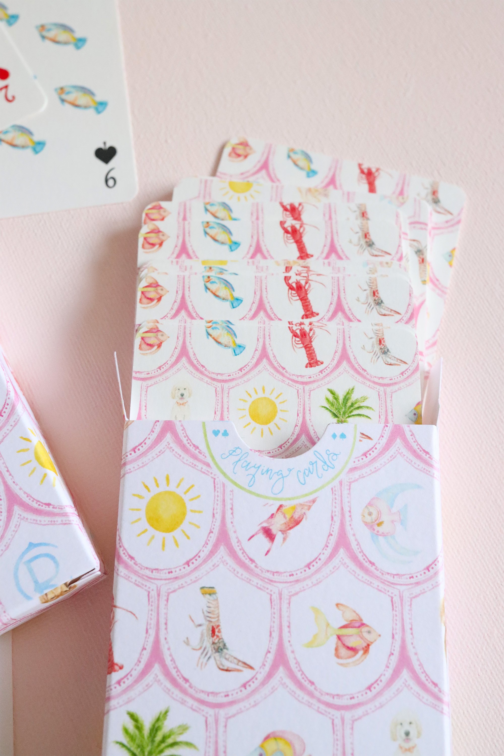 Personalized playing card decks are one of those bonus wedding day items that everyone will remember and cherish! A keepsake with your personal stationery artwork on them? Nothing is cuter. We love thinking of creative ways to bring the art to a βtake homeβ item for your guests and this is a favorite for sure.